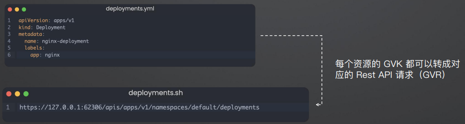 Client-go 入门和实战(一) 简介与简单运用 电脑版发表于:2025/10/17 15:42  >#Client-go 入门和实战(一) 简介与简单运用 [TOC] Client-go 简介 ------------ ### 什么是 Client-go? tn2>Client-go 是 Kubernetes 官方提供的 Go 语言的客户端库, 使用该库可以访问 Kubernetes API Server,实现对 Kubernetes 资源(包括 CRD)的增删改查操作。 ### Kubernetes API Group tn2>K8s API 分为核心 API 和命名 API 组,对资源的增删改查可以理解为是对 K8s API 的请求 Client-go 封装了请求 API 所需的鉴权、请求参数以及将返回 JSON 转化为 Go 结构体(Unmarshaling)  ### Kubernetes Core API tn2>包括 namespace、 service、pods、nodes、configmap、secrets、pv 等对象  ### Kubernetes Named API tn2>包括 apps/v1/deployments、 apps/v1/replicasets 等对象  ### 验证 K8s API 请求 tn2>获取 namespaces(core API) :`https://172.30.1.2:6443/api/v1/namespaces?limit=500` 当然你们可能是`127.0.0.1` ```bash kubectl get ns -v6 ```  tn2>获取 deployment(named API):`https://172.30.1.2:6443/apis/apps/v1/namespaces/default/deployments?limit=500` ```bash kubectl get deploy -v6 ```  ### 理解 GVK 和 GVR   ### 快速尝试 tn2>以获取 Pod 和 Deployment 为例介绍 Client-go 的用法 首先初始化go mod ```bash go mod init github.com/lyzhang1999/demo1 ``` tn>go.mod 就是用来记录这些依赖的清单的。 而 go.sum 是用来记录每个依赖的哈希值(确保安全和一致性)的。 tn2>下面展示了使用`client-go`查看`kube-system`名称空间下的pod。 ```go package main import ( "context" "flag" "fmt" "path/filepath" metav1 "k8s.io/apimachinery/pkg/apis/meta/v1" "k8s.io/client-go/kubernetes" "k8s.io/client-go/tools/clientcmd" "k8s.io/client-go/util/homedir" ) func main() { // 加载 kubeconfig 配置 var kubeconfig *string if home := homedir.HomeDir(); home != "" { kubeconfig = flag.String("kubeconfig", filepath.Join(home, ".kube", "config"), "kubeconfig 文件路径") } else { kubeconfig = flag.String("kubeconfig", "", "kubeconfig 文件路径") } flag.Parse() // 构建配置 config, err := clientcmd.BuildConfigFromFlags("", *kubeconfig) if err != nil { panic(err.Error()) } // 创建 Kubernetes 客户端 clientset, err := kubernetes.NewForConfig(config) if err != nil { panic(err.Error()) } // 获取所有 Pod pods, err := clientset.CoreV1().Pods("kube-system").List(context.TODO(), metav1.ListOptions{}) if err != nil { panic(err.Error()) } fmt.Printf("找到 %d 个 Pod:\n", len(pods.Items)) for _, pod := range pods.Items { fmt.Println(pod.Name) } } ``` tn2>go mod tidy 会自动清理和修复 go.mod 与 go.sum 文件,让它们保持与项目实际依赖一致。 ```bash go mod tidy ``` tn2>运行我们的代码。 ```bash go run main.go ```  tn2>接着我们使用命令进行查看是否正确。 ```bash kubectl get pod -n kube-system ```  tn2>输出的Pod我们发现是一样的。 tn>注意:如果go的版本比较落后请进行升级,我这里Linux的升级脚本如下: ```bash wget https://go.dev/dl/go1.23.2.linux-amd64.tar.gz sudo tar -C /usr/local -xzf go1.23.2.linux-amd64.tar.gz ``` ### 获取Deployment tn2>在上面的基础上添加如下代码,来获取`kube-system`名词空间下的deployment。 ```go deplouments, err := clientset.AppsV1().Deployments("kube-system").List(context.TODO(), metav1.ListOptions{}) for _, deploument := range deplouments.Items { fmt.Println(deploument.Name) } ```  tn2>可以看到它输出了`calico-kube-controllers`和`coredns`,与我们执行的获取deploy是一样的。 Client-go 在集群内的配置 ------------ tn2>借助`InClusterConfig`的方法来获取K8s API的Token。 需要注意给Service Account授权,否则无对应权限。 ### In Cluster Configuration原理 tn2>1.K8s 会给每个Pod注入Service Account配置文件,包括token和ca证书,路径如下: `/var/run/secrets/kubernetes.io/serviceaccount/token` `/var/run/secrets/kubernetes.io/serviceaccount/ca.crt` 2.K8s默认会给所有Pod注入`KUBERNETES_SERVICE_HOST`和`KUBERNETES_SERVICE_PORT`变量。 首先,我们尝试创建一个简单的nginx pod,然后查看一下。 ```bash kubectl run nginx --image=nginx ``` tn2>创建完成之后我们看一下它的环境变量。 ```bash kubectl exec pod/nginx -- env ```  ```bash KUBERNETES_SERVICE_HOST=10.96.0.1 KUBERNETES_SERVICE_PORT=443 ``` tn2>查看注入的token文件地址。  ### 代码示例 tn2>首先创建一个`demo`的集群角色,并给它`pod`和`deployment`的`list`权限,除此之外我们将`demo`绑定到我们的默认角色中。 ```bash kubectl create clusterrole demo --resource pods,deployment --verb list kubectl create clusterrolebinding demo --clusterrole demo --serviceaccount default:default ``` tn2>代码示例如下,这里的`InClusterConfig`将会直接使用我们之前看到的路径下的Token进行访问集群。 ```go package main import ( "context" "fmt" metav1 "k8s.io/apimachinery/pkg/apis/meta/v1" "k8s.io/client-go/kubernetes" "k8s.io/client-go/rest" ) func main() { config, err := rest.InClusterConfig() if err != nil { fmt.Printf("error %s", err.Error()) } clientset, err := kubernetes.NewForConfig(config) if err != nil { fmt.Printf("error %s", err.Error()) } pods, err := clientset.CoreV1().Pods("kube-system").List(context.Background(), metav1.ListOptions{}) if err != nil { fmt.Printf("error %s", err.Error()) } for _, pod := range pods.Items { fmt.Printf("Pod name %s\n", pod.Name) } deployment, err := clientset.AppsV1().Deployments("kube-system").List(context.Background(), metav1.ListOptions{}) for _, d := range deployment.Items { fmt.Printf("deployment name %s", d.Name) } } ``` tn2>定义`Containerfile`文件。 ```bash FROM golang AS build-stage WORKDIR /app COPY . . RUN go mod download && go build main.go FROM ubuntu WORKDIR / COPY --from=build-stage app/main /main ENTRYPOINT ["/main"] ``` tn2>通过`nerdctl build -t lyzhang1999/model-6-demo-1:in-cluster-1 . --namespace=k8s.io`打包成容器后,定义`depl